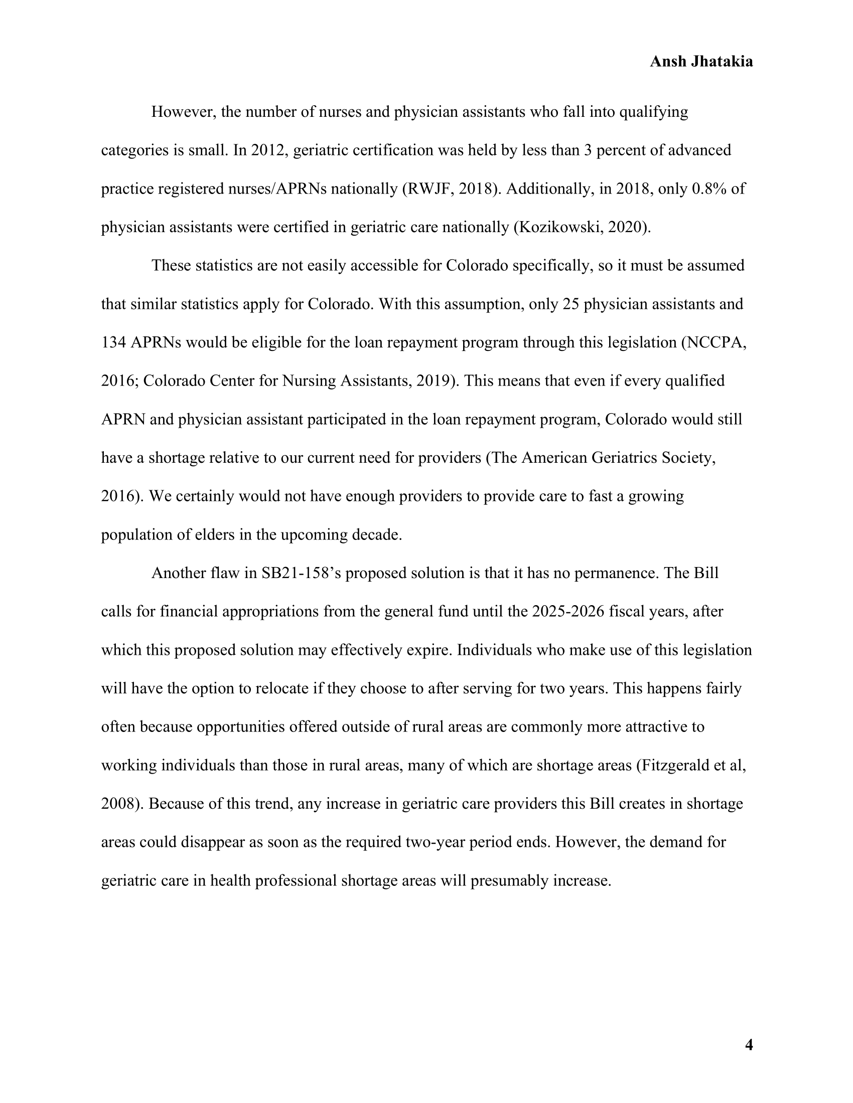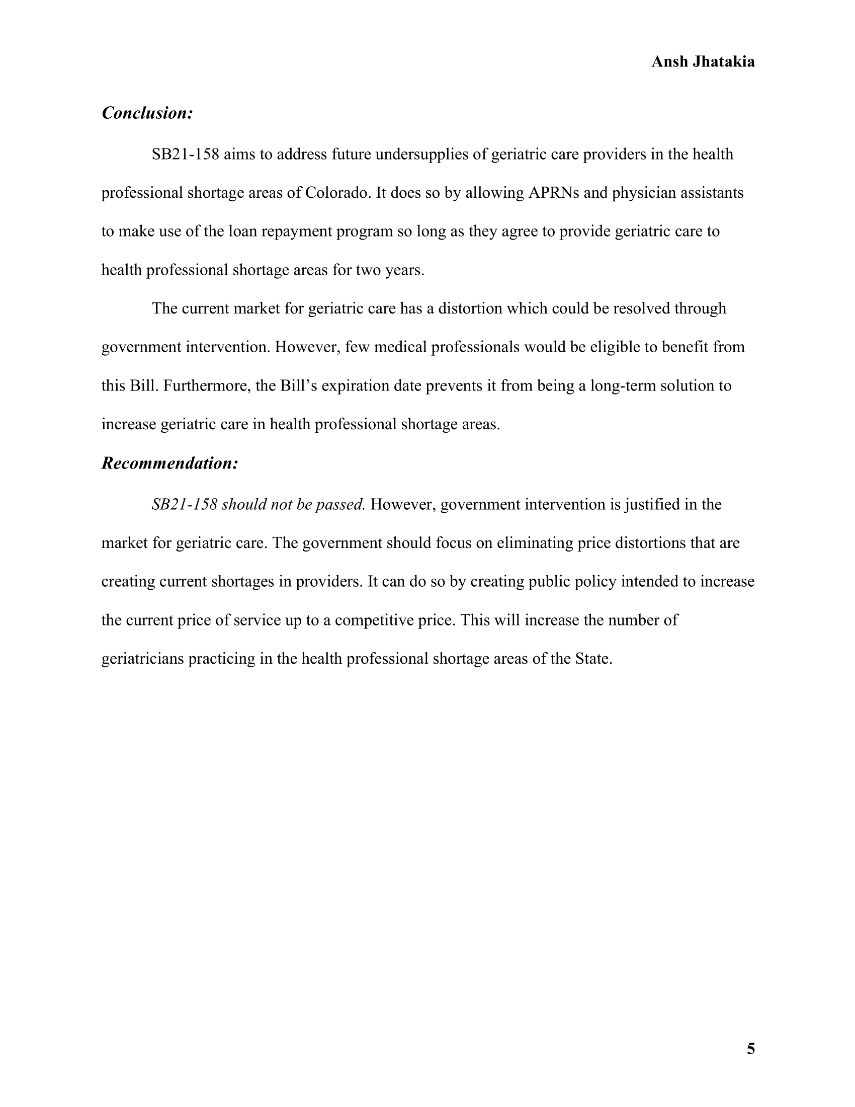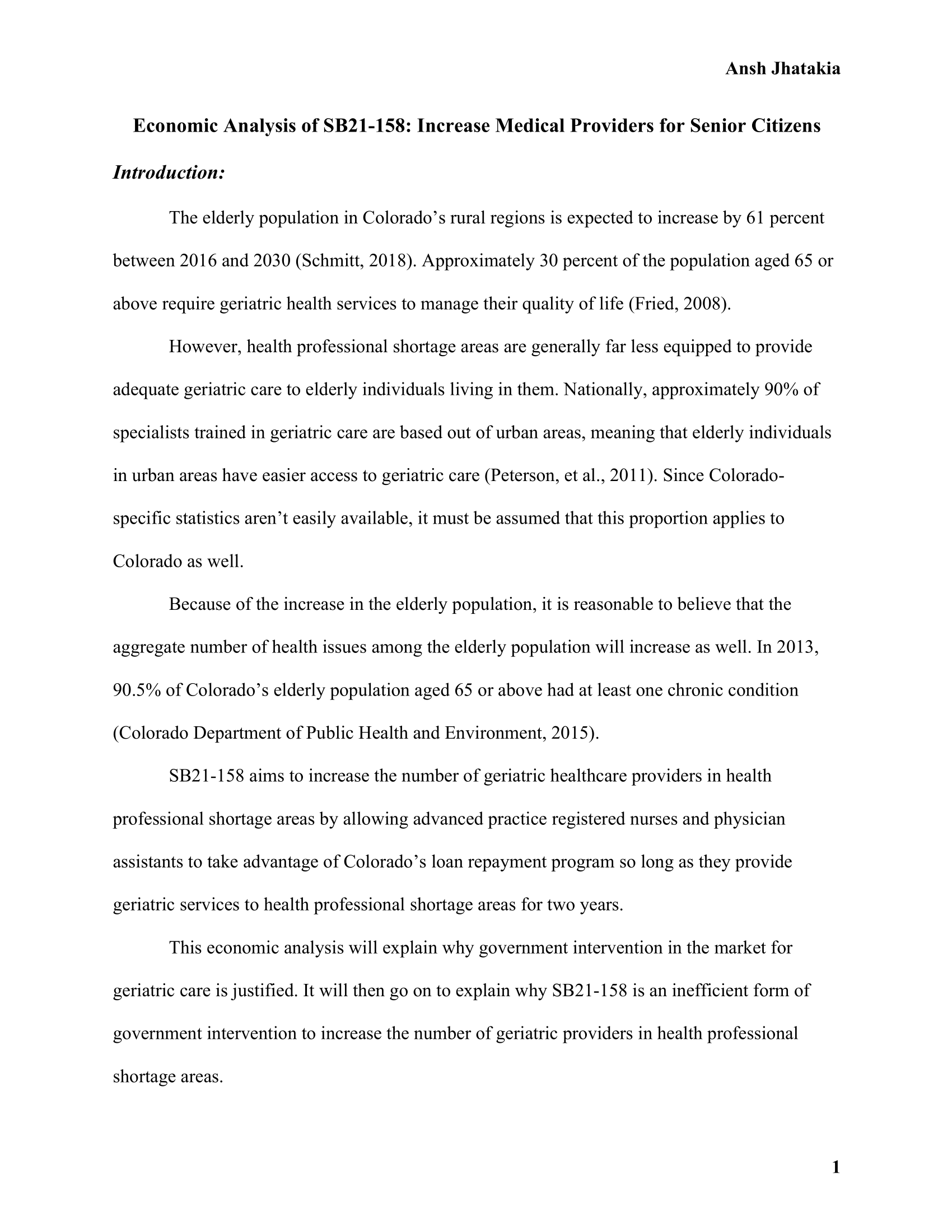 (Writing Sample) Economic Analysis of SB21-158: Increase Medical Providers for Senior Citizens